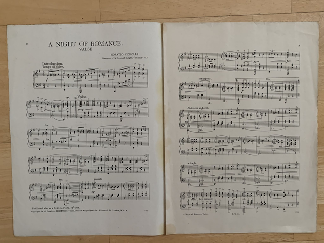 A Night of romance by Horatio Nicholls 1918 Sheet Music