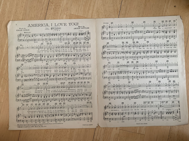 Sheet music for the song 'America I love You' from the film 'Tin Pan Alley'