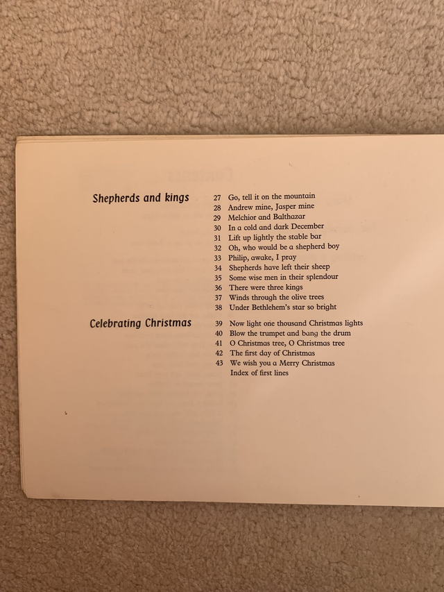 Spiral bound book of sheet music and songs for Children at Christmas
