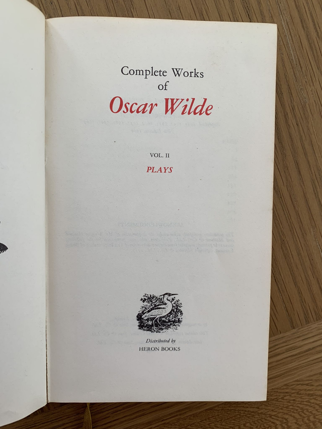 Hardback book dating from 1966 of Plays by Oscar Wilde
