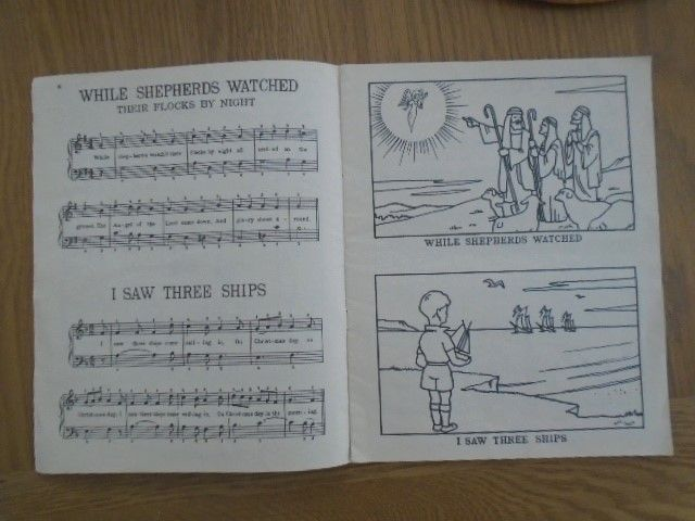 Dating from 1950's this beautiful book has words and music for various carols and also pictures next to each one for children to colour in
