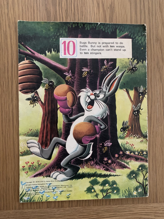 This paperback book dates from 1967. Highly coloured pictures featuring Bugs Bunny and his friends teah children to count from 1 - 10